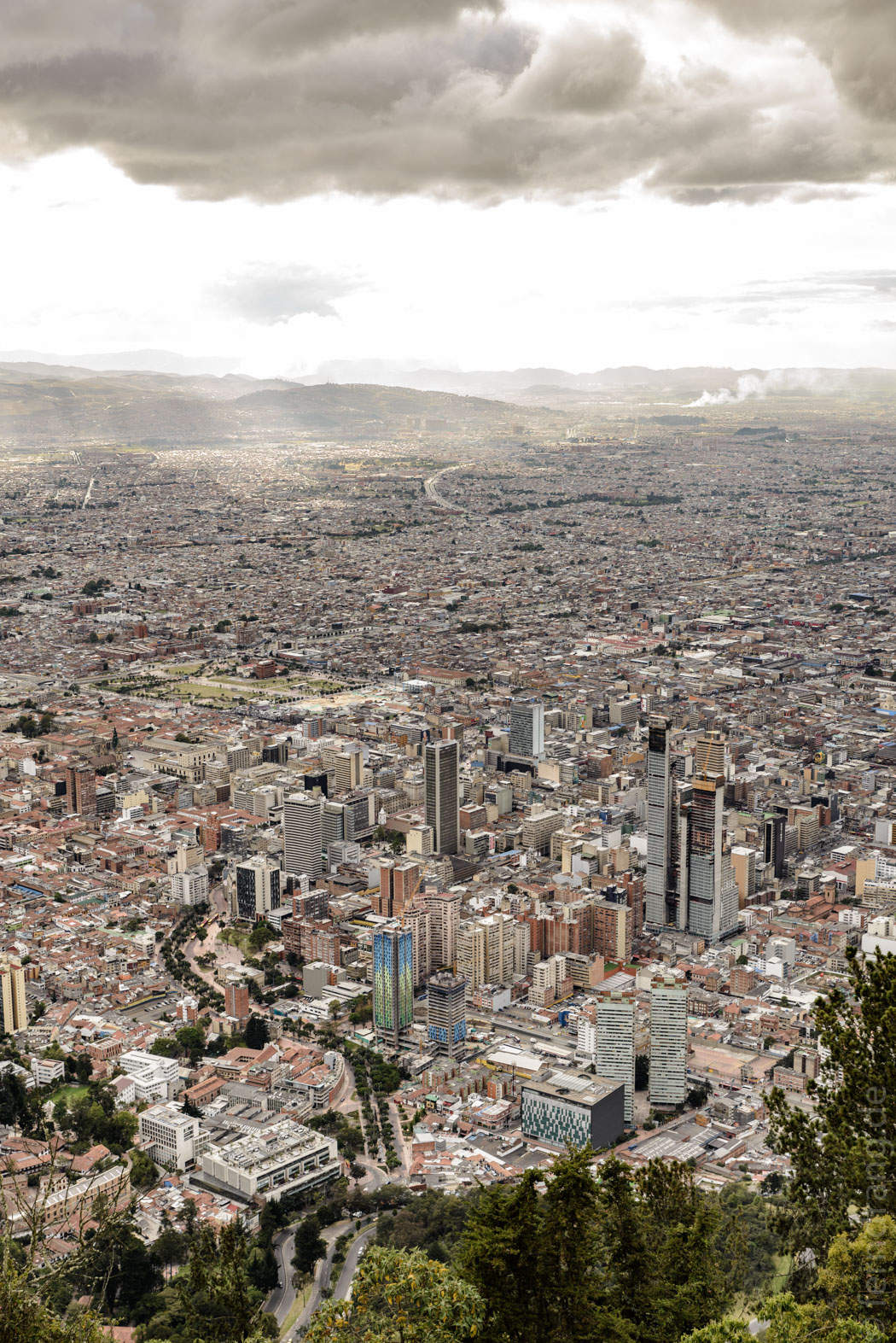 Wir marschieren erstmal ans Ostende des Viertels, wo eine Seilbahn auf den Monserrate heraufführt. Die Kirche dort oben ist nicht der Rede wert und die Stände ebensowenig. Aber der Blick über Bogota ist fantastisch. Die Stadt erstreckt sich bis an den Horizont. Auf dem Rückweg war plötzlich eine lange Schlange vor der Seilbahn und ganz viele Leute noch dorthin unterwegs. Der Sonnenuntergang auf dem Berg scheint eine beliebte Attraktion zu sein.