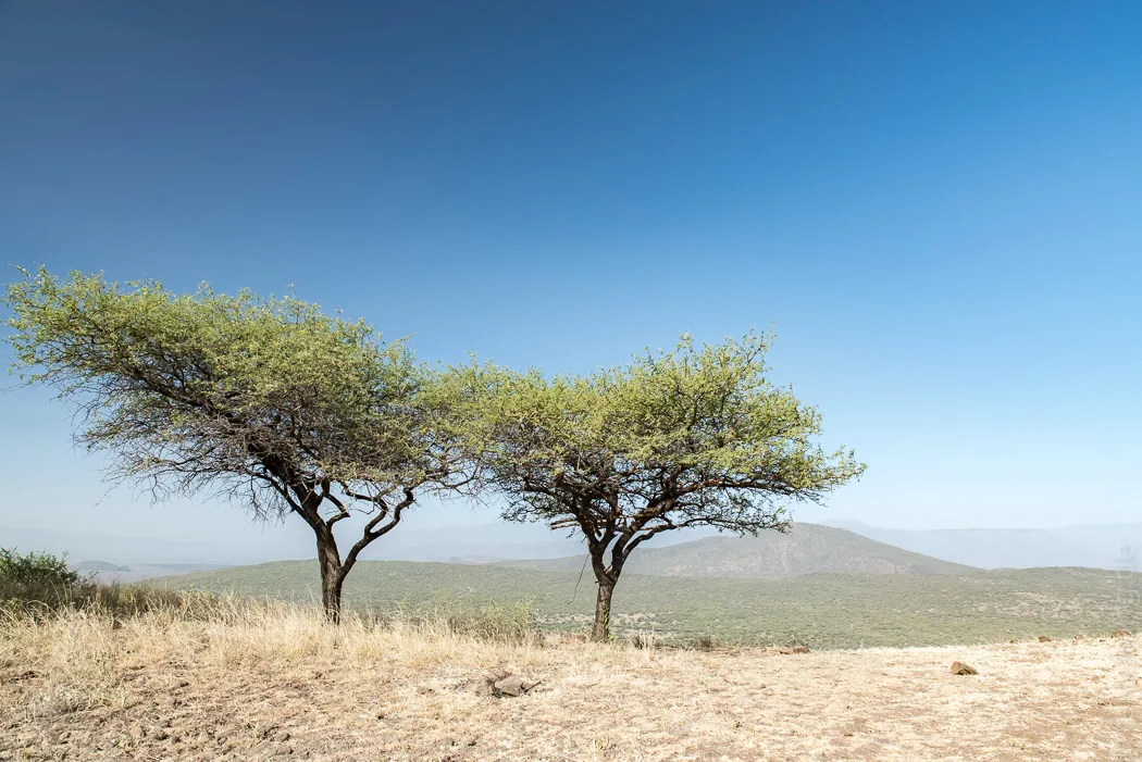 Arba Minch ist ein schäbiges Kaff ohne eine einzige Sehenswürdigkeit. Nur die Lage ist interessant. Es liegt auf einem kleinen Plateau über zwei großen Seen, ein blauer und ein brauner, die von einer bergigen Landbrücke getrennt sind, die großspurig “God’s Bridge” genannt wird. In der “Paradise Lodge” haben wir einen hübschen kleinen Bungalow direkt an der steilen Kante und nichts stört den Blick auf den Nationalpark Nichisar, der zu unseren Füßen beginnt. Wir genießen das Nichtstun und beobachten die Marabus und Raben, die nur wenige Meter vor unserer Terrasse vorbeisegeln und sich um jede Beute streiten. Abends schallt aus dem dichten Brokkoli-Wald das wilde Geschrei von Affenbanden herauf. Und manchmal schleicht sich auch ein großer Pavian durch ein Loch im Zaun, um den Mangobaum hinter unserer Hütte zu plündern.