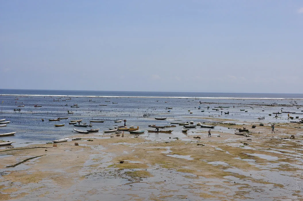 Ich habe auch direkt ein hübsches, balinesisch eingerichtetes Zimmer für wenig Geld gefunden. Das Hotel Bungalo No. 7 liegt direkt am Strand mit Blick über die ganze Bucht von Jungutbatu. Schon von hier aus kann man die riesigen Algenfelder bestaunen. Diese werden hier nämlich in großem Stil angebaut und getrocknet.
