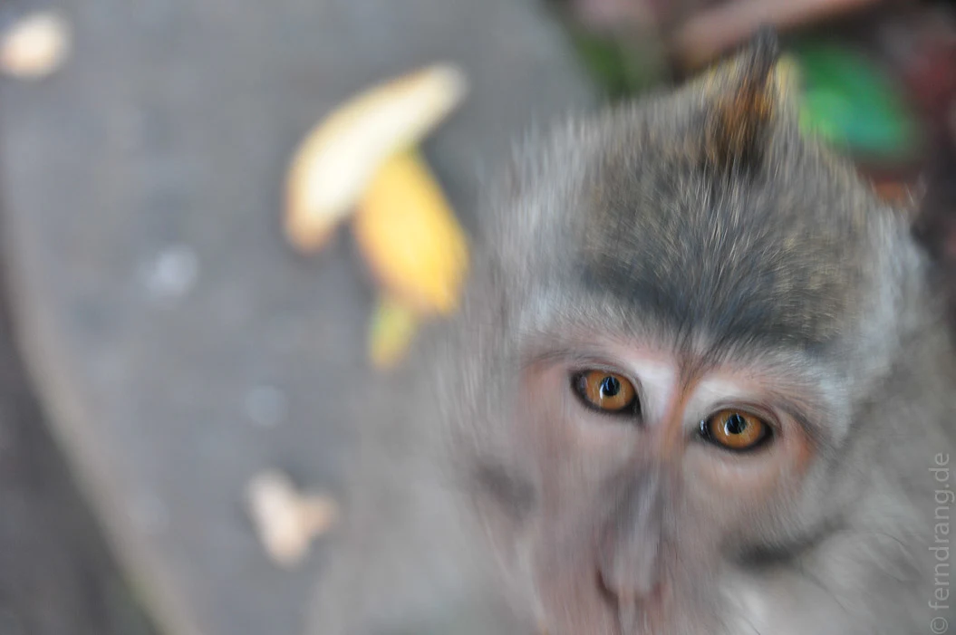 In Ubud, das mitten in Reisterrassen und grün bewaldeten Hügeln liegt, sind wir im kleinen Hotel “Pramesti” gelandet. Vor unserer Hütte ist eine kleine Terrasse, von der aus wir die hoteleigene Kanienchenfamilie durch den Garten hoppeln sehen können. Davon abgesehen könnte die Bleibe etwas unschimmeliger sein.