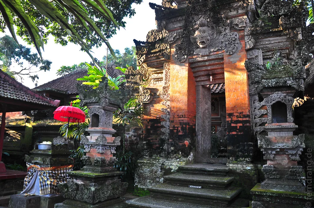 Der Ort besteht hauptsächlich aus zwei Straßen, die gesäumt sind von Hotels, Restaurants und Shops. Die künstlerische Ausbeute, mit der der Ort prahlt, erschöpft sich in knallbunten Urwalbildern und abgemalten “Originalen”. Die meisten Restaurants und Hotels sind aber sehr hübsch und liebevoll gestaltet. Zwischen soviel balinesischer Wohnkunst fallen die vielen Tempelchen kaum auf.