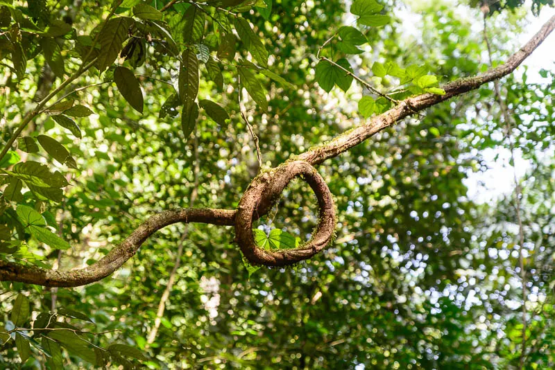 Wegen der Verspätung gab es für uns keinen Zwischenstopp in der Benarat Lodge mehr. Stattdessen sind wir direkt in den Mulu Nationalpark gefahren. Da Mulu aus fast nichts anderem besteht als Park und Flughafen, war das eine Fahrt von fünf Minuten. Der Park beginnt hinter einem Fluss; über eine Hängebrücke gelangt man hinein. Im Park wird großen Wert auf den Status als Weltnaturerbe gelegt, was auf jedem Schild wiederholt wird. Das Besondere hier sind die vielen Höhlen, die Rekorde in allen Kategorien brechen: Die höchste Passage in einer Höhle, der längste unterirdische Fluss, die breiteste Passage, spätestens “das größte Luftvolumen in einer Höhle” beendet die Begeisterungsfähigkeit für Höhlenrekorde. Später konnten wir aus eigener Anschauung noch selbst den Rekord für “den stinkensten Berg Fledermausscheiße in einer Höhle” hinzufügen.