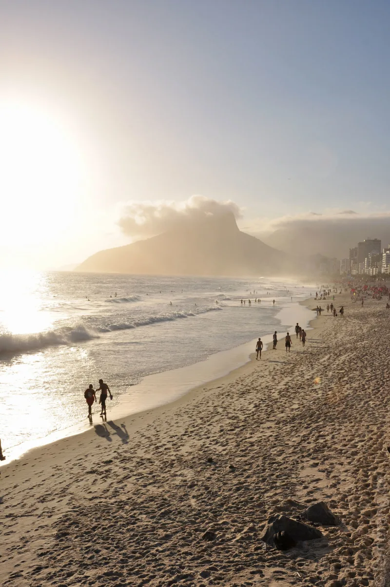 Den Sonnenuntergang am Ipanema Beach darf man sich auch nicht entgehen lassen. Hier bleibt die Sonne am längsten und taucht die Surfer in gleißendes Licht. Der Wellengang ist hier oft zu stark zum Schwimmen, was die Heerscharen am Strand aber nicht von einer kurzen Abkühlung abhält.