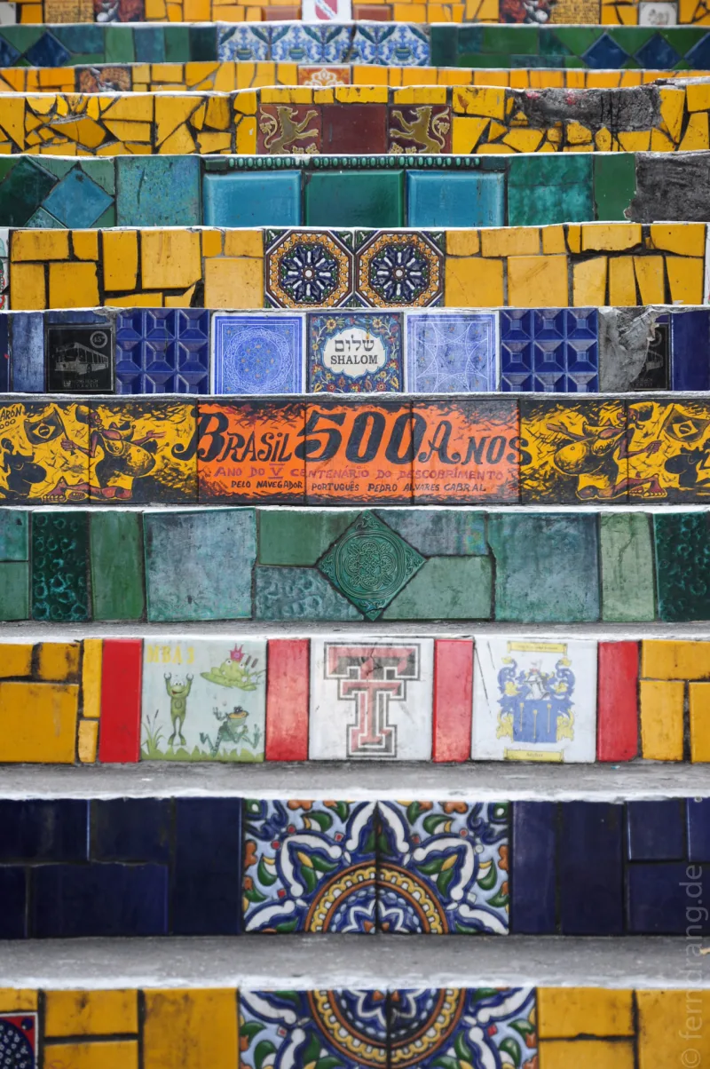 Mit einer netten Gruppe sind wir in einem alten VW-Bus zum Cristo Redentor gefahren. Die Straße schraubt sich durch alte, mediterrane Viertel bis in den Tijuca, Rios Urwald hinein. Der Blick auf die kleine Welt ist toll. Mit einem Abstecher durch Santa Teresa, einem ehemaligen Edel-Viertel aus den 30er Jahren, sind wir nach Lapa zu der berühmten Kacheltreppe gefahren.