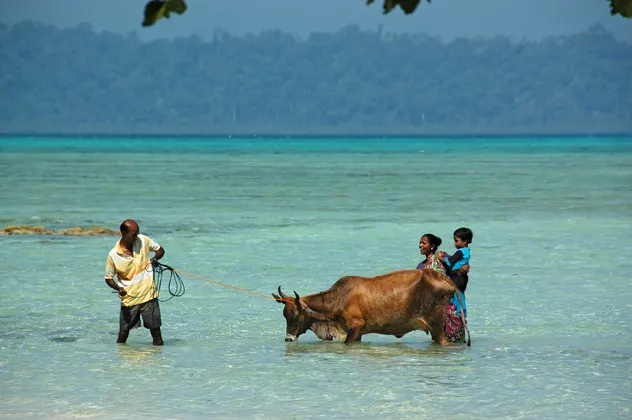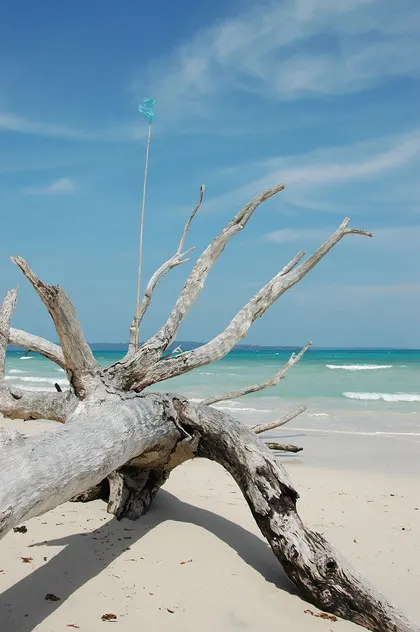 Nach einer rasanten Fahrt durch das noch nächtliche Chennai sind wir in die übliche Flughafen-Maschinerie geraten. Doch schon der Flug auf die Andamanen lohnt sich. Denn der Landeanflug zeigt eine traumhafte Inselgruppe, deren Inselchen und Korallenriffe wie Fettaugen auf einer Suppe schwimmen.