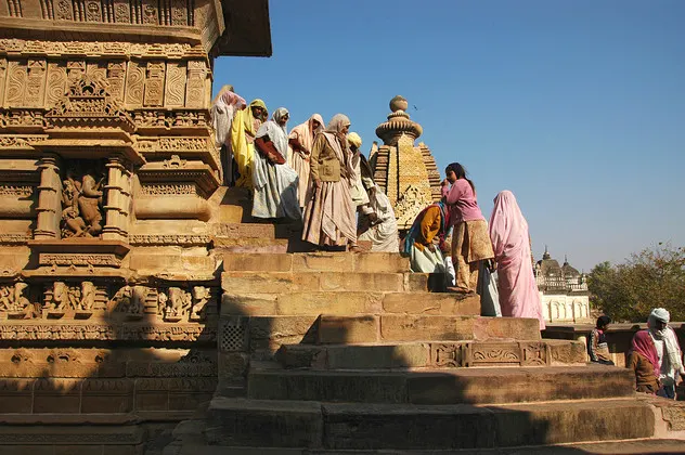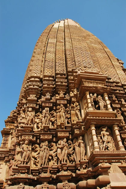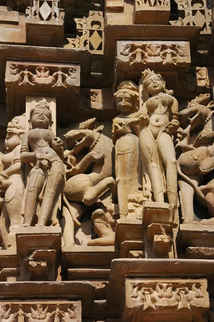 Die Hauptattraktion Khajurahos und der Grund, weshalb viele Touristen dieses abgelegene Kaff besuchen, sind die Tempelanlagen. Sie standen als erstes auf unserem Programm. Die Tempel sind verschiedenen Gottheiten gewidmet, um 1000 herum errichtet worden und ähneln sich alle sehr. Die langgezogenen Kuppeln sind in futuristischem 50er Jahre Design gehalten, während der gesamte Rest innen wie außen mit erotischen Figuren geschmückt ist. Bei frühlingshaftem Sonnenschein sind wir durch die erstaunlich gepflegte Anlage gewandert und haben tausende Paare Kugelbrüste und anzügliche Darstellungen bewundert.