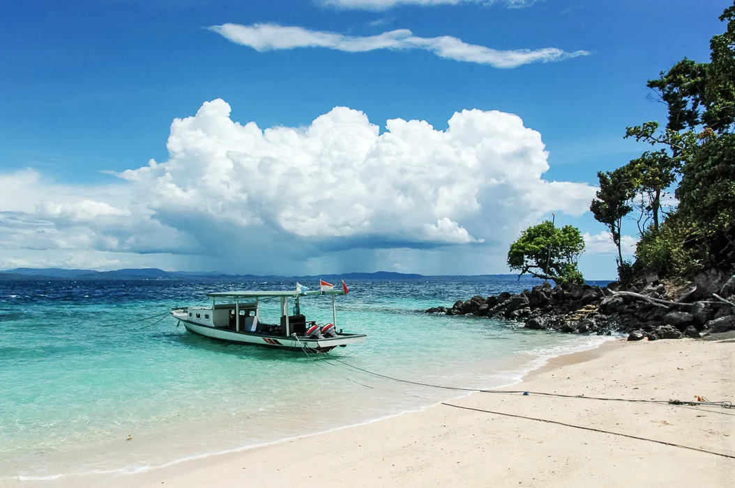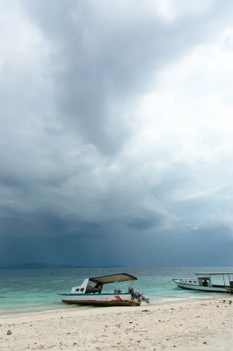 Die letzte Etappe führte uns über einen schmalen Streifen Meer endlich zur Insel Bangka. Die Insel ist größer als erwartet und sehr grün. Unser Hotel – das Murex Bangka Resort – liegt einsam in einer winzigen Bucht, die nur vom Meer aus zu erreichen ist. Dass das Resort nur fünf Hütten hat, kam uns schon wenig vor, dass wir aber die einzigen Gäste sind, hätten wir nicht gedacht. Die Crew wirkt wie eine große Familie und ist es zum Teil vermutlich auch; der Umgang ist entsprechend unkompliziert.
