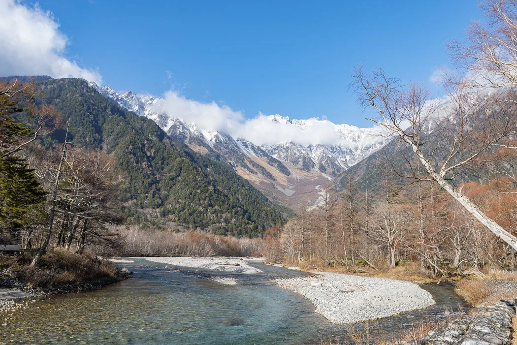 Am nächsten Morgen sind wir früh aufgebrochen, um einen Ausflug nach Kamikochi zu machen. Das ist eine beliebte Wanderregion, die man gut mit dem Bus erreichen kann. Auf dem Weg dorthin sind wir durch endlose Täler mit bunten Wäldern und Stauseen gefahren. Je höher wir kamen, desto kahler wurde es. In Kamikochi hatten wir die Herbstlaubfärbung leider schon verpasst. Aber trotzdem gab es noch viel Grün von den Nadelhölzern und dem unverwüstlichen Unterholz der kahlen Birkenwälder. Die Gegend sieht aus wie Twin Peaks. Diane, die Douglasfichten sind herrlich.