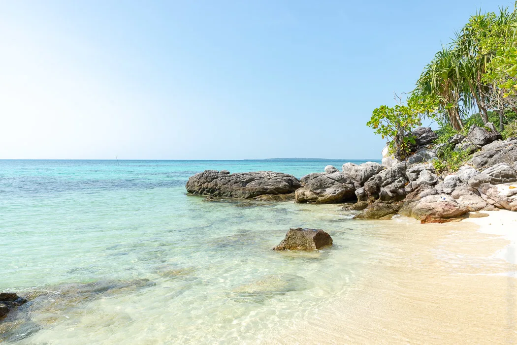 Die Insel ist herrlich entspannt. Im kleinen Dorf gibt es ein paar Restaurants und kleine Lädchen für den täglichen Bedarf. Für die Strände muss man sich aber einen Roller ausleihen, denn die liegen recht weit über die grüne Insel verstreut. Das Meer ist traumhaft türkis und die Wellen plätschern meistens nur sanft ans Ufer.