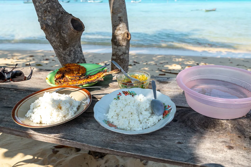 An kleinen Strandbüdchen konnten wir uns mit Wasser und Snacks versorgen, ohne den Schatten der großen Meermandelbäume verlassen zu müssen. So schön es dort war, so wenig lässt sich über die ereignislosen Tage berichten. Man kann einen Tauchausflug organisieren und natürlich schnorcheln. Vor allem aber kann man herrlich ausspannen. Das scheinen auch die freundlichen Einheimischen zu tun, die man selten bei der Arbeit sieht.