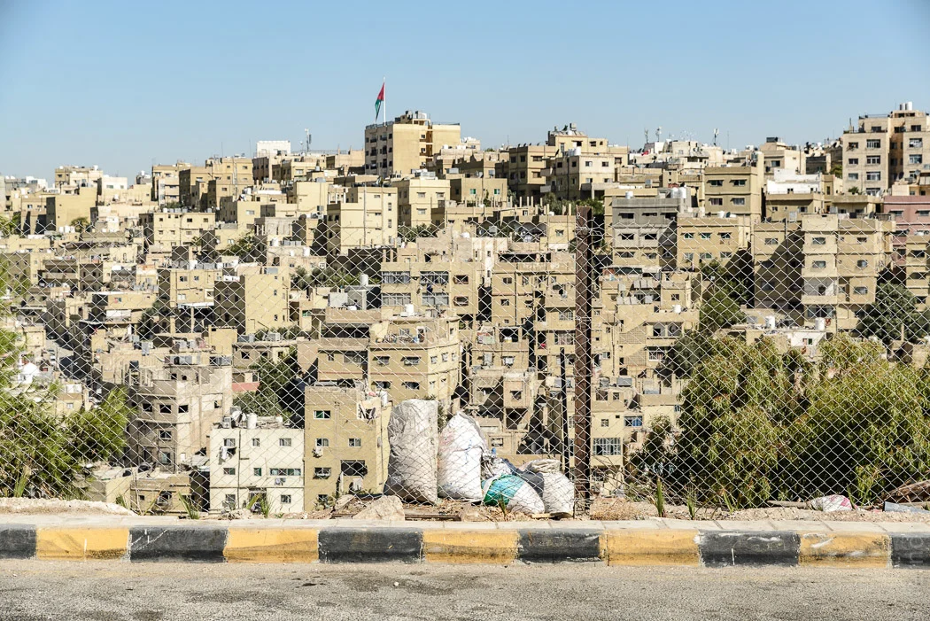 So gestärkt wenden wir uns dem höchsten der unzähligen Hügel Ammans zu, auf dem die Ruinen der Zitadelle und des Herkulestempels stehen. Die steilen Hänge sind fast so dicht bebaut wie die brasilianischen Favelas, wobei doch alles recht ordentlich wirkt. Immer wieder verlaufen Treppen zwischen den Häusern. Denn die Straßen verlaufen oft unvorhersehbar. Man muss sich daran gewöhnen, die Straßenkarte als Topographie zu lesen: Konzentrisch verlaufene Schlangenlinien verraten die Hügel, um die sie verlaufen. Manchmal verläuft die nächste Parallelstraße 30m tiefer und um zu einem Haus in der nächsten höher gelegenen Straße zu kommen muss man den Stadtplan konsultieren, um nicht auf einem anderen Hügel zu landen. Das ist der Preis für den klassischen Charme einer Stadt, die auf Hügeln gebaut ist. Immer wieder bieten sich Blicke über diese endlose Stadt, in der jedes einzelne Haus gleicht aussieht: Unverputzte Sandsteinmauern mit Flachdach. Diese staubige Optik gibt dem Panorama, das sich hier an so vielen Stellen bietet, etwas ausgesprochen tristes. Die Graffiti-Künstler scheinen das Potenzal noch nicht für sich erschlossen zu haben.