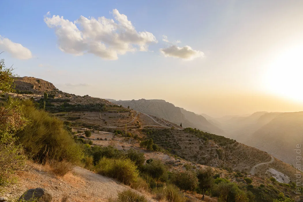 Der Sonnenuntergang über dem Tal verkürzt uns die Wartezeit bis zum nächsten, liebevoll zubereiteten Abendessen im Dana Tower.