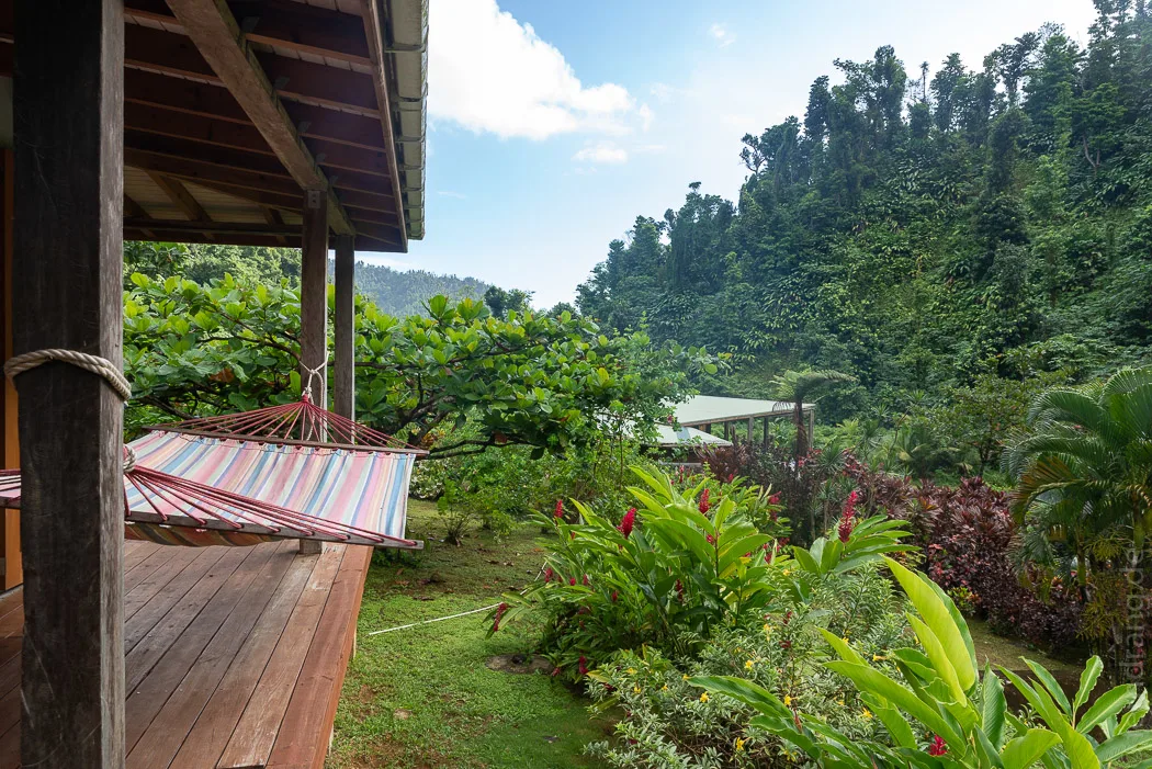 Unsere erste Unterkunft ist die wundervolle Banana Lama Eco Villa. Weit ab von Allem haben die Gastgeber Mel und Andy ein kleines Idyll geschaffen. Der Abzweig von der Landstraße ist leicht zu übersehen und besteht aus kaum mehr als zwei Spuren ins Dickicht. Wir mussten an einem Haus parken, wo früher mal eine Brücke über den Fluss führte. Der große Sturm vor zwei Jahren hat alles zerstört. Jetzt muss man an Ziplines über den Fluss sausen. Danach hat Andy uns mit seinem Pickup zur Lodge gefahren. Die nächsten Tage haben wir es uns in einem der drei wunderschönen, offenen Zimmer gemütlich gemacht und uns von Mels Kochkünsten verwöhnen lassen.