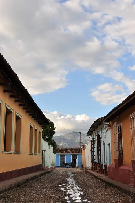 Pünktlich zum Morgengrauen sind wir im Kolonialstädtchen Trinidad angekommen. Hier ist der alte Stadtkern noch so wie die Spanier ihn verlassen haben, nur ein paar Jährchen älter. Der alte Glockenturm macht sich sehr hübsch vor der bergigen Kulisse. Das Kopfsteinpflaster hat ähnliche Gehqualität wie unser berühmtes Kölner Stück Römerstraße, verleiht dem Ort aber einen authentischen Charme.