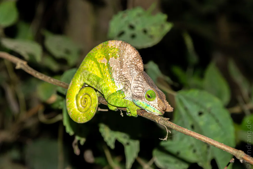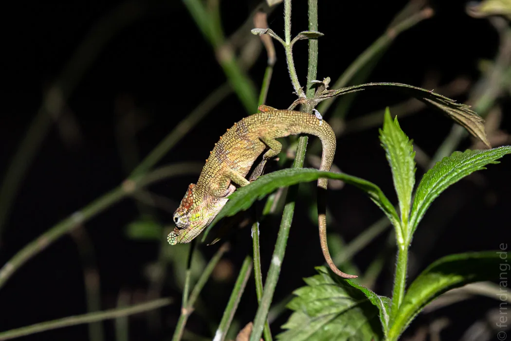 An den steilen Wänden wuchern Farne und üppige Büsche zwischen den Bäumen. Nach Einbruch der Dunkelheit tummeln sich dort Frösche und Chamäleons. Auf letztere waren wir besonders scharf. Tatsächlich konnten wir einige davon sehen. Die kleinsten waren nicht größer als ein Finger.