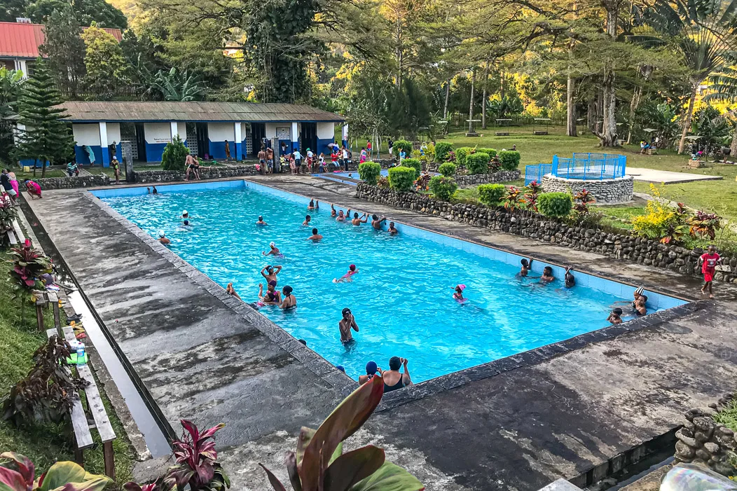 Unser Fahrer Leonid hat uns am Nachmittag in die etwas weiter im Tal liegende Ortschaft gefahren. Dort gibt es nämlich ein Thermalbad. Vor der malerischen Kulisse der regenbewaldeten Hänge liegt das Freibad in einer Flusskehre. Über eine Hängebrücke gelangten wir zum Eingang. Mit einer frisch erstandenen Badekappe haben wir uns unauffällig unters Volk gemischt. Das ist in einem afrikanischen Dorffreibad nicht ganz einfach. Aber die meisten Leute waren mehr damit beschäftigt, nicht zu ertrinken oder sich am Beckenrand fotografieren zu lassen. Das Wasser aus einer heißen Quelle war nicht länger als ein paar Minuten auszuhalten - ein madagassischer Onsen. Abends haben wir dann im Reiseführer gelesen, dass das Wasser leicht radioaktiv sei. Naja, vielleicht hilft es gegen Malaria?