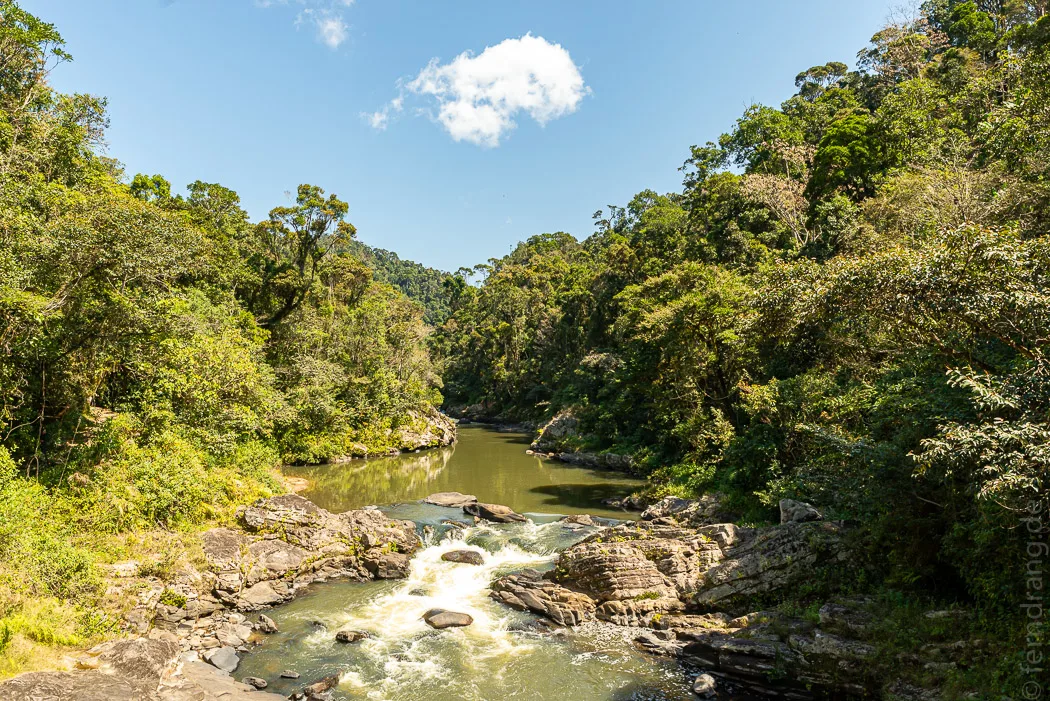 Gegen Ende der fast sechsstündigen Fahrt hat sich das Landschaftsbild schleichend aber letztlich komplett geändert. Der Ranomafana Park ist ein dichter, tropischer Regenwald. In dem ansonsten recht baumlosen Hochland sind die überwucherten Hänge der Schlucht eine Augenweide. Ein Wasserfall liegt in der Nähe des Parkeingangs und bildet das Tor zu dieser tollen Gegend.