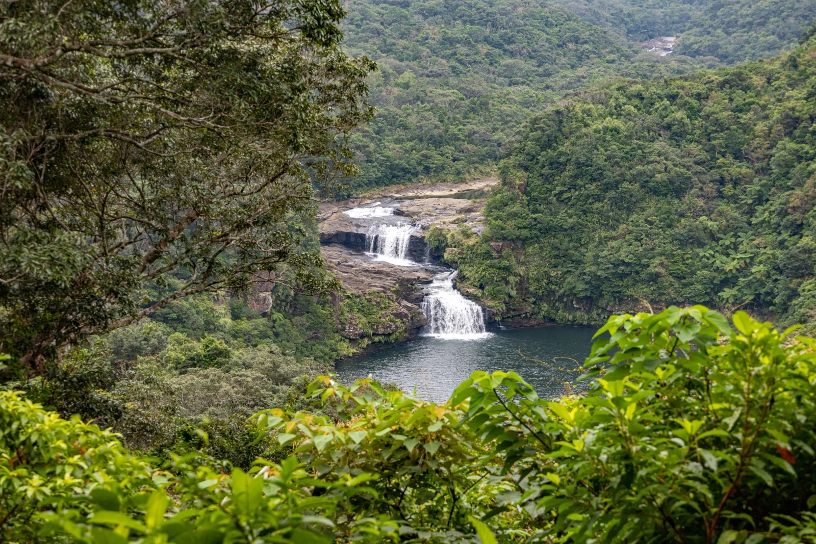 Wir haben einen Ausflugstag eingelegt, um die Strandgammelei abzumildern. In einer kleinen Gruppe sind wir mit Kajaks durch Mangrovenflüsse zum höchsten Wasserfall der Insel gepaddelt. Klingt romantisch, aber auf dem Fluss war Stau, so viel war los. Schön war es aber trotzdem, wie nach einer Biegung über den gefluteten Wäldern der Wasserfall wie ein weißer Bart von einer hohen Klippe fiel. Eine nette Wanderung war auch im Programm. Laut Aussagen des Guides schien so gut wie alles im Wald giftig zu sein: Eine falsche Mango, die bei Berührung tötet, Holz, das beim Verbrennen giftigen Rauch verströmt, Beeren, Blätter… gut, dass es außer Schmetterlingen (und der Katze) kaum Tiere gibt.