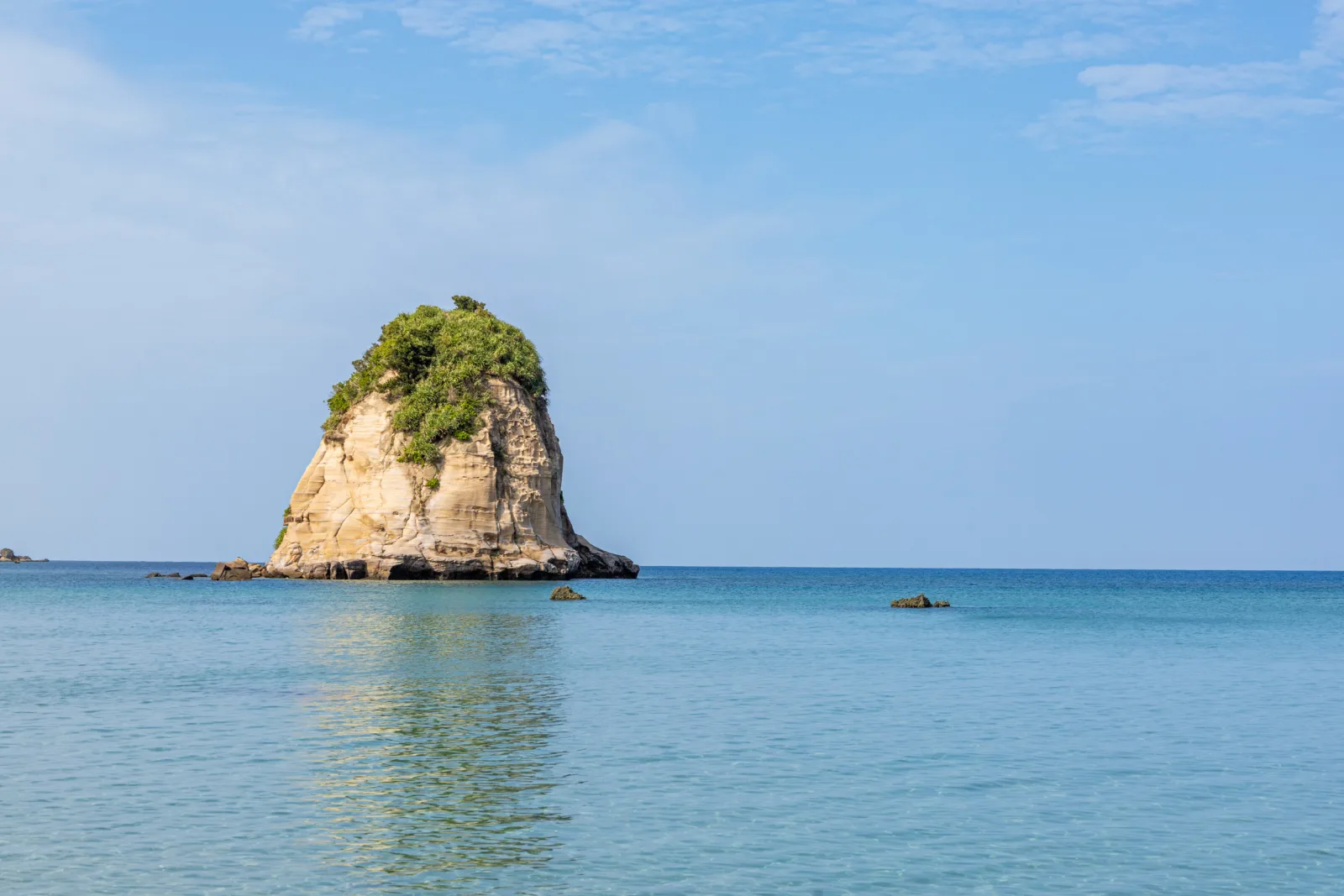 Vor der Küste Iriomotes liegt eine seltsame kleine Koralleninsel. Meistens steht sie unter Wasser, nur bei Flut ragt sie mal ein paar Zentimeter heraus. Auch wenn das einfach eine Untiefe ist, war es doch sehr eigenartig mitten im Meer von Board zu gehen und im knietiefen Wasser zu stehen. Die Farben des Meeres rund herum waren einmalig.