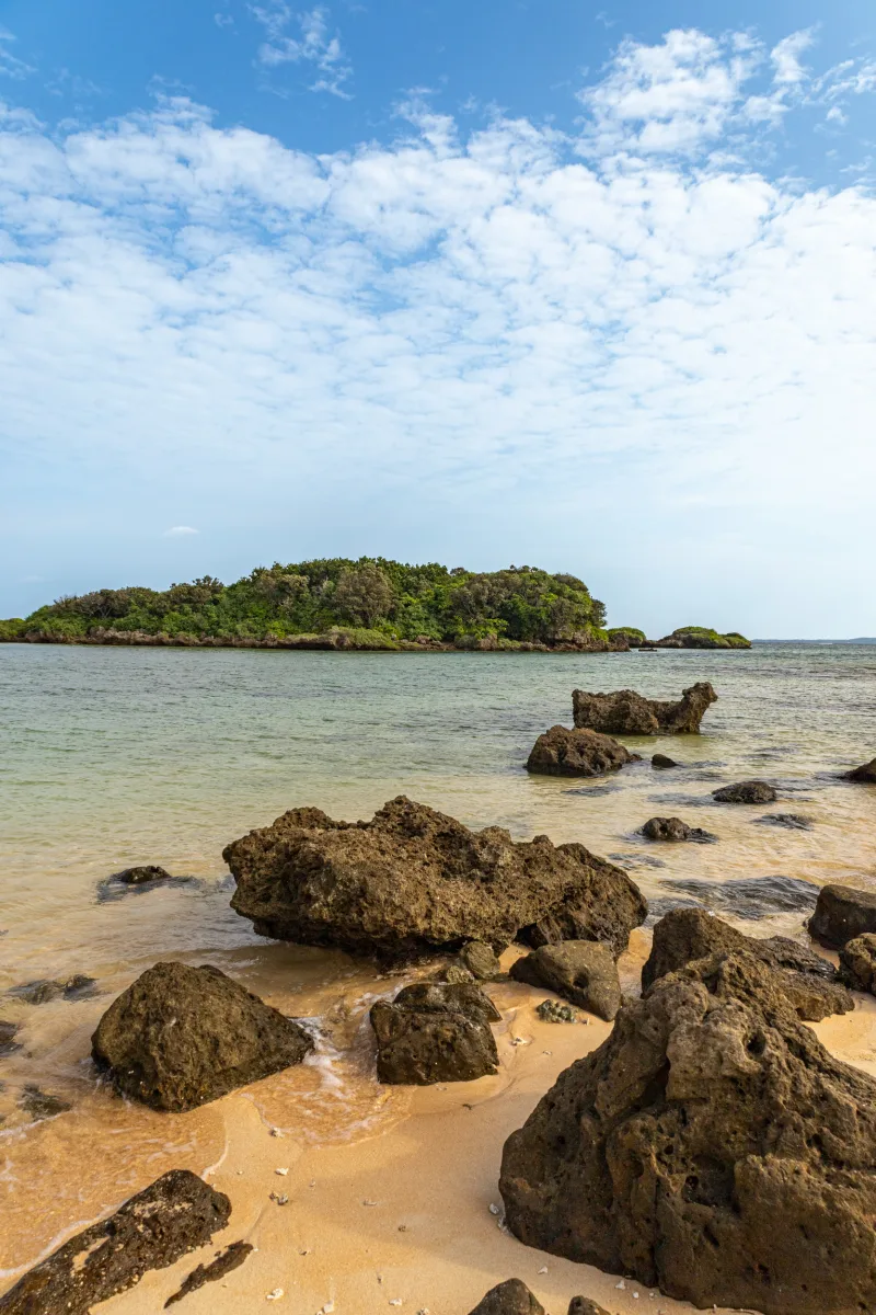 Die Überfahrt nach Ishigaki hatten wir auf den späten Nachmittag gelegt, um vorher noch etwas Zeit am Meer zu haben. Unser Hotelvater (auch eine One-Man-Show - vielleicht ist das lebenslange Arbeiten das Geheimnis des Alterns?) hat sich seinen Geheimtipp für „my best beach" für den letzten Tag aufgehoben und uns einen Weg zu einer nahe gelegenen Bucht erklärt.