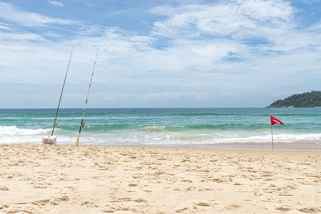 Der Strand von Campeche ist das Naherholungsgebiet der Floripaner, die hier morgens joggen, mittags Joga machen, nachmittags angeln und nach der Arbeit zum Wellenreiten rauskommen. Die Profis rücken direkt mit Sonnenschirm und Kühlbox an. Am Sonntag herrschte Baggersee-Atmosphäre. Obwohl der Strand 10km lang ist, knubbelte sich alles an einer Stelle (wo es Duschen und Açaí-Softeis gab - verständlich). Schon ein paar Meter weiter war es recht friedlich.