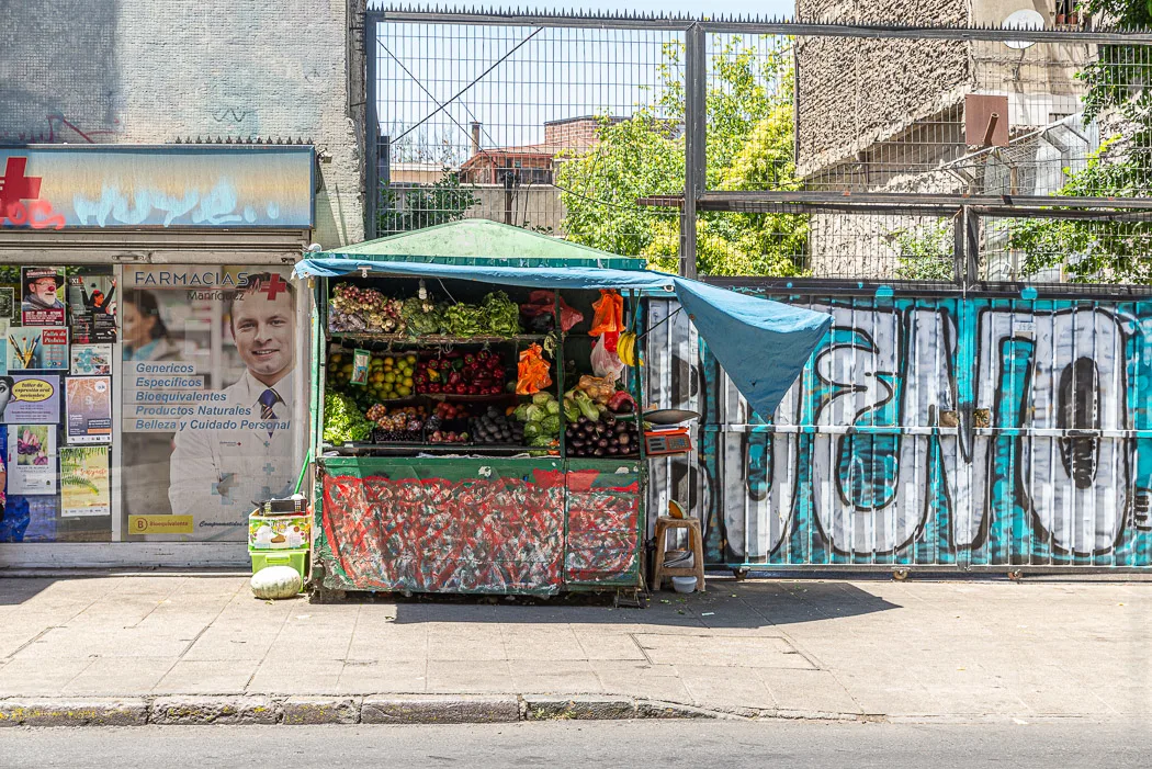 Unser kleines Hotel war in einem schönen, alten Haus in einer ruhigen Sackgasse untergebracht. Direkt um die Ecke liegt das nette Viertel „Barrio Lasterria“. Dort reihen sich Cafés und Eisdielen aneinander, die die wildesten Torten anbieten. Zwischen Graffiti-Kunstwerken und prächtigen, alten Häusern gibt es unzählige Straßenstände, an denen vor allem junge Leute ihr Einkommen mit T-Shirts, Sandwiches, Massagen, Obst oder anderem Kleinkram aufbessern. Trotz der vielen Menschen auf der Straße geht man es hier ruhig an. Im Café eine Zeitung lesen, mit dem Hund rausgehen, ein wenig in den kleinen Lädchen stöbern. Doch alle zwei Stunden muss sich der gediegene Chilene der schwierigen Entscheidung stellen, ob der nächste Snack gefroren oder frittiert sein soll.