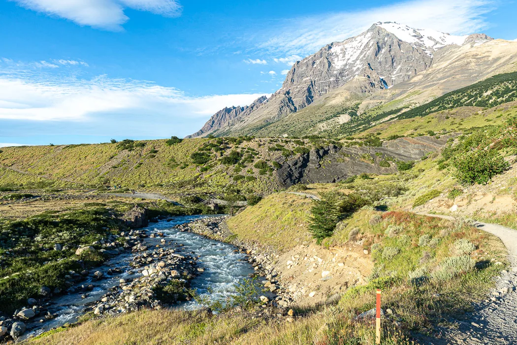 Am dritten Tag mussten wir zum nächsten Camp weiter, dem „Refugio Los Cuernos“. Wenn man das „Torre Central“ etwas hinter sich gelassen hat, wird es auch endlich etwas „unzivilisierter“. Denn man lässt auch die Straße hinter sich, die bis zu einem großen Hotel führt, und die befahrener ist als man es sich wünscht.