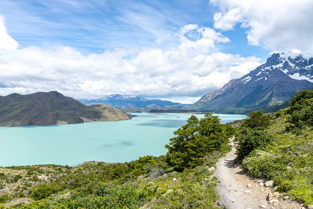 Hinter ein paar Hügeln tauchte der große Lago Nordenskjöld auf, der vermutlich nach einem berühmten Chilenen benannt ist, wie alles dort unten. Vor allem aber war der See milchig-grün und funkelte prachtvoll in der Sonne. Der Weg führte noch einige Stunden weiter entlang des Sees und ging dabei moderat hoch und runter.