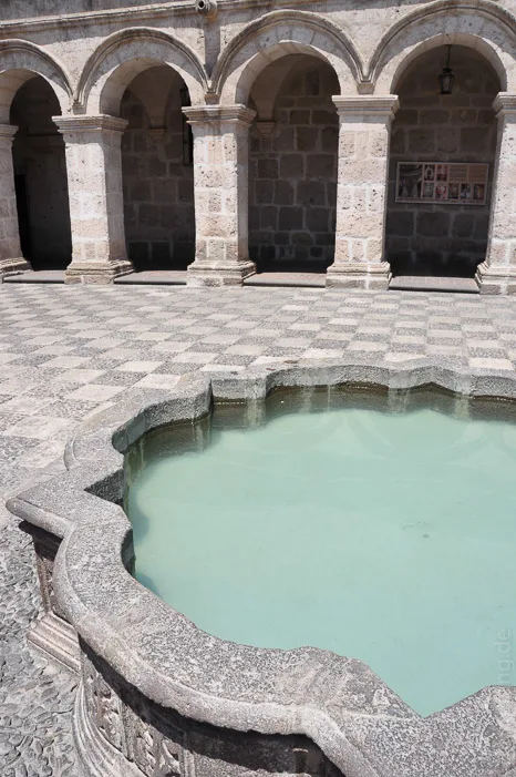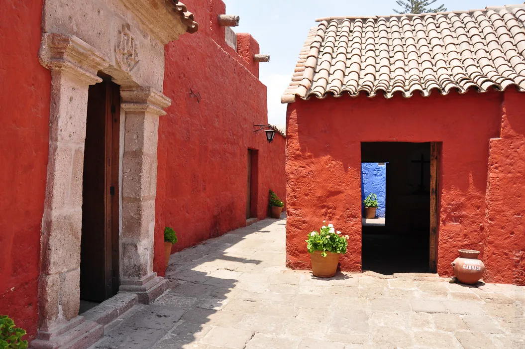 Die Hauptattraktion ist aber das Frauenkloster Santa Catalina. Hinter einen hohen Mauer findet man hier eine kleine Stadt in der Stadt. Die Zellen sind äußerst geräumig und die ausgestellte Originaleinrichtung der Schwestern ist prachtvoll. Die Quartiere bestehen aus mehreren Räumen und haben eigene Küchen. Den Erzählungen nach sollen die Schwestern hier alles andere als enthaltsam gelebt haben und sich von einem Vielfachen an Sklaven und Mägden verwöhnt haben lassen. Heute sind die Platze und Sträßchen im Kloster sehr hübsch in knalligen Farben getüncht.