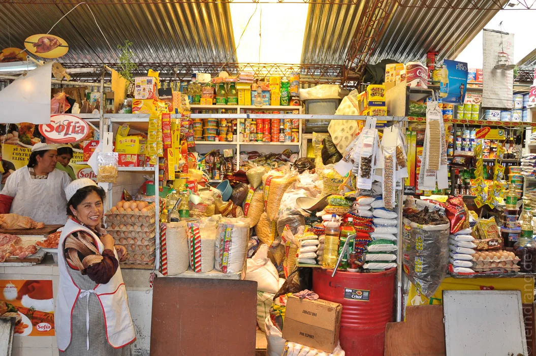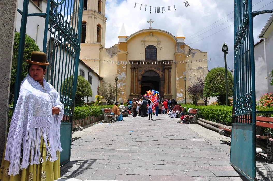 Das Hotel liegt mitten im Indigena-Viertel. Die Straßen sind von kleinen Ständen gesäumt, an denen die Frauen in ihren typischen Trachten alles von Obst über Pümpel bis zu weißer Toblerone feilbieten. In den Straßen des sogenannten Hexenmarkts kann man auch seine Lust nach getrockneten Lama-Babys oder Häuten von allem, was selten ist, stillen. Wir haben es bei halbchristlichen Devotionalien belassen.