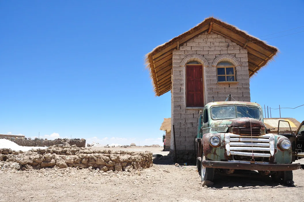 Am frühen Abend sind wir mit dem Nachtbus nach Uyuni gestartet. Anfangs dachten wir, der üble Ruf der Straße sei vollkommen übertrieben, aber nach ein paar Stunden sind wir nur noch über eine holprige Schotterpiste gebrettert. Es ist erstaunlich, dass der Bus das mehr als einmal aushält. Wir durften noch bis Sonnenaufgang im Bus weiterschlafen und konnten dann um 5 Uhr das Kaff Uyuni langsam aufwachen sehen.