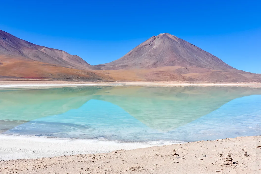 Später sind wir die chilenische Grenze entlang zur Laguna Verde gefahren. Bei richtigem Wind- oder Sonnenstand (man ist sich nicht einig) soll sie sich smaragdgrün färben. Wir konnten zwar ein zartes Türkis bewundern, doch die Bedingungen schienen nicht gereicht zu haben. Dennoch ein schöner Ort.