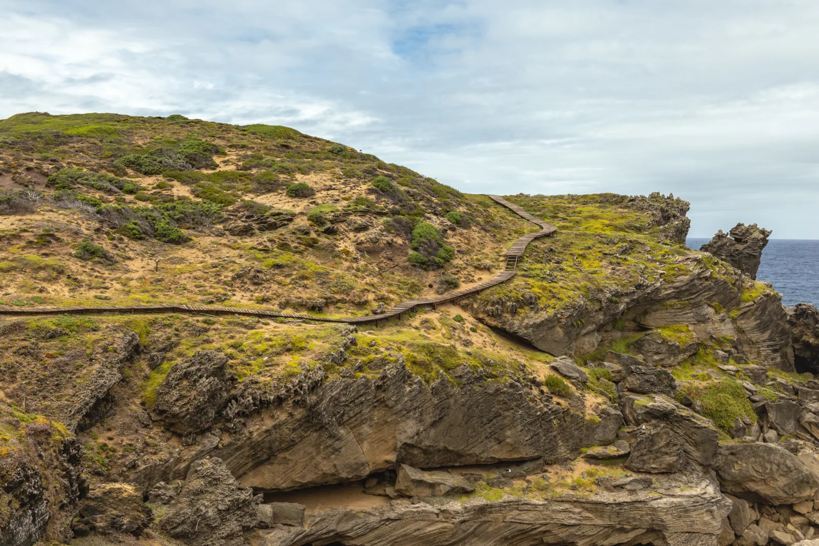 Der hoch gelobte Küstenwanderweg, hat sich als asphaltierter Streifen entpuppt, der direkt unterhalb der Promenade durch die steile Uferböschung führt. Auf den sieben Kilometern ist jeder Meter Meerblick mit schicken Ferienhäusern bebaut. Darunter beginnt direkt ein dichtes Gestrüpp windschiefer Hecken, das bis zum felsigen Ufer reicht. Nach einer Weile wird es etwas einsamer und man könnte auf jeder der 130 Parkbänke eine kontemplative Pause mit Meerblick machen. Dennoch ist die Küste malerisch und man kann viele Vögel in der abwechslungsreichen Vegation sehen.