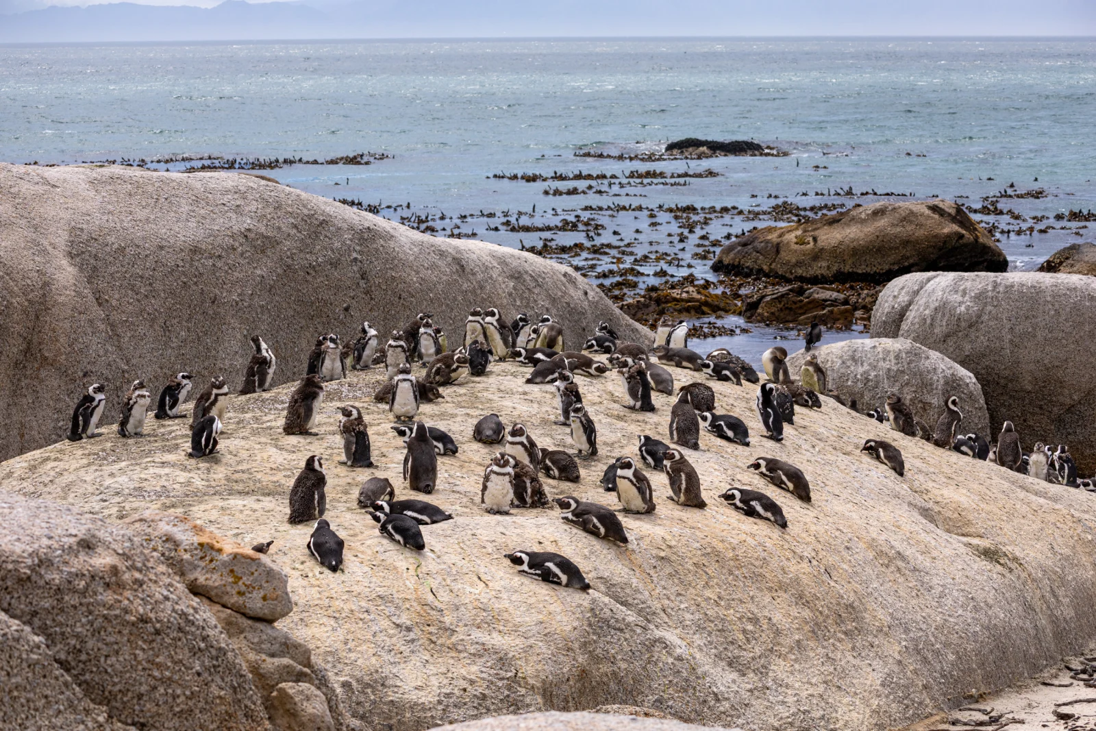 Weiter südlich und auf der anderen, östlichen Seite des Kaps liegt Boulder Bay. Dort hat sich zwischen den mächtigen Felsbrocken auf dem Strand eine kleine Pinguin-Kolonie angesiedelt. In einem abgesperrten Bereich kann die kleinen Stinker aus nächster Nähe beobachten. Am benachbarten Badestrand mischen sich die Pinguine auch unauffällig unters Badevolk und stellen sich so arglos neben Menschen, dass sie fast einen störenden Schatten aufs Handtuch werfen.
