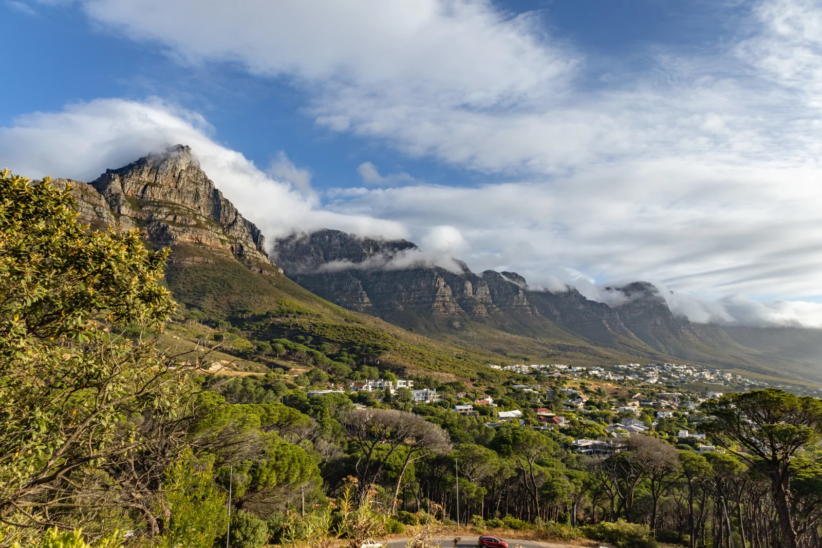 Die Schnellstraße schlängelt sich am Fuß des Tafelbergs entlang und gibt nach einer Weile den Blick auf den Lion’s Head frei – der markante kleinere Gipfel wacht über der Stadt und ist von überall aus zu sehen. Unsere private Unterkunft liegt im ruhigen und schicken Tamboerskloof, wo sich alte viktorianische mit modernen Häusern abwechseln.