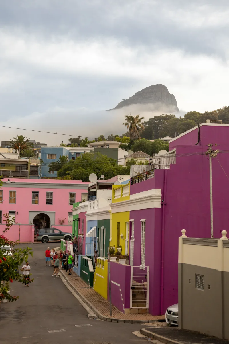 Zurück in Kapstadt haben wir einen Abstecher ins bunte Viertel Bo Kaap gemacht. Die Häuser sind alle in knallbunten Farben gestrichen und es gibt eine Menge Streetart. Außer einigen Touristen mit Kameras war in dem verschlafenen Viertel nicht viel los.