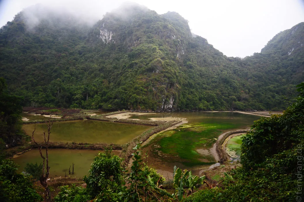 Am zweiten Tag haben wir auf der großen Insel Cat Ba Halt gemacht. Von einer kleinen Bucht aus ging es dann mit Fahrrädern einen Meeresarm entlang ins Innere der Insel. Passend zum ziemlich feuchten Klima ist die einzige Farbe auf der Insel Grün und alles komplett überwuchert.