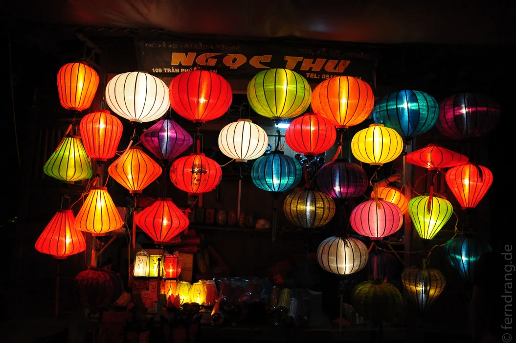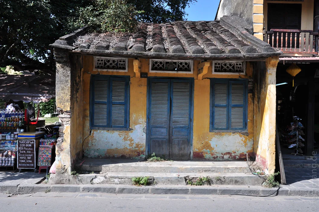 Hoi An ist für seine ausnehmend schöne, chinesische Altstadt berühmt. Auf einige Sträßchen ist hier der Segen des Weltkulturerbes herabgegangen, so dass die hübschen, alten Häuser mit ihren geschindelten Dächern erhalten geblieben sind. In der ganzen Altstadt sind Ketten von Lampions kreuz und quer über die Gassen gespannt. Auch die kurze Brücke zum Viertel An Hoi, in dem wir im gleichnamigen Hotel mit Blick auf den Fluss untergekommen sind, ist mit Laternen geschmückt.