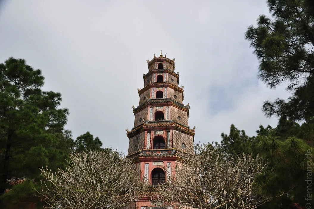 Am zweiten Tag haben wir uns im Hotel Fahrräder geliehen und einige der zahlreichen Sehenswürdigkeiten im Umland erkundet. Zunächst haben wir in der Thien Mu Pagode endlich einen dieser für Vietnam typischen, sich etagenweise verjüngenden Türme bewundert. Danach haben wir uns mit großer Begeisterung fürs Radfahren auf dem Weg zu den kaiserlichen Grabmählern verfahren. Durch eine Abkürzung über einen Friedhof sind wir wieder auf die richtige Strecke gekommen um zum wundervollen Grabmahl von Tu Duc zu gelangen.
